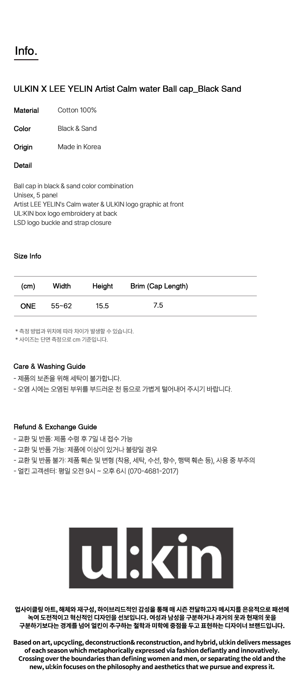얼킨 X 이예린 아티스트 캄 워터 볼캡_블랙 샌드